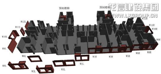 在100米以下公共建筑中采用預(yù)制裝配整體式框架剪力墻結(jié)構(gòu)體系,柱、梁、疊合板、樓梯、陽臺預(yù)制裝配,剪力墻現(xiàn)澆;適用市中心場地狹小、環(huán)保要求高、工期要求緊的項(xiàng)目。